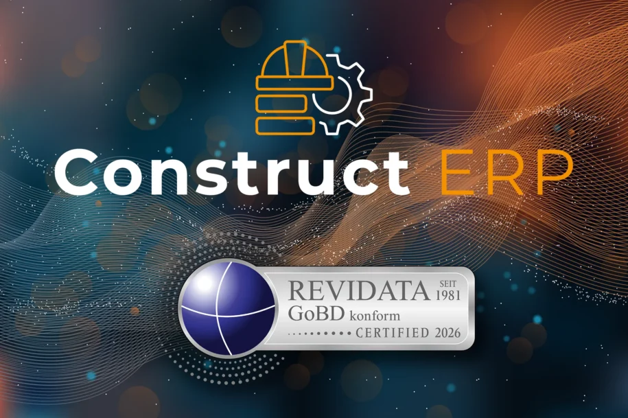Langen 13.04.2026. Das aktuelle Release des ERP-Systems Construct ERP, Mizar 2026, ist vom anerkannten Prüfdienstleister REVIDATA auf die Einhaltung der „Grundsätze zur ordnungsmäßigen Führung und Aufbewahrung von Büchern, Aufzeichnungen und Unterlagen in elektronischer Form sowie zum Datenzugriff” (GoBD) untersucht worden. Gegenstand der Prüfung war die in Construct ERP als eigenständiges System implementierte Dokumentenmanagement-Software.